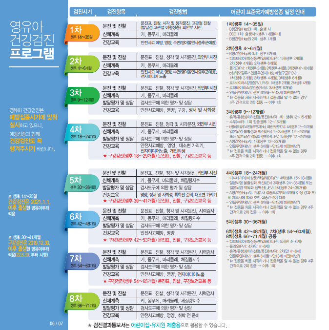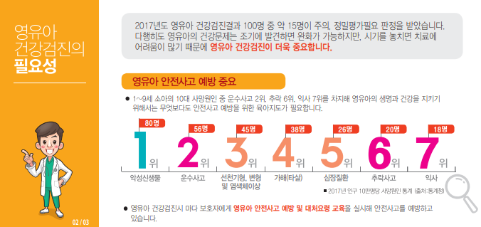 또한 영유아 검진을 통해 발견된 문제점을 조기치료 하고, 완치율도 높일 수 있습니다.