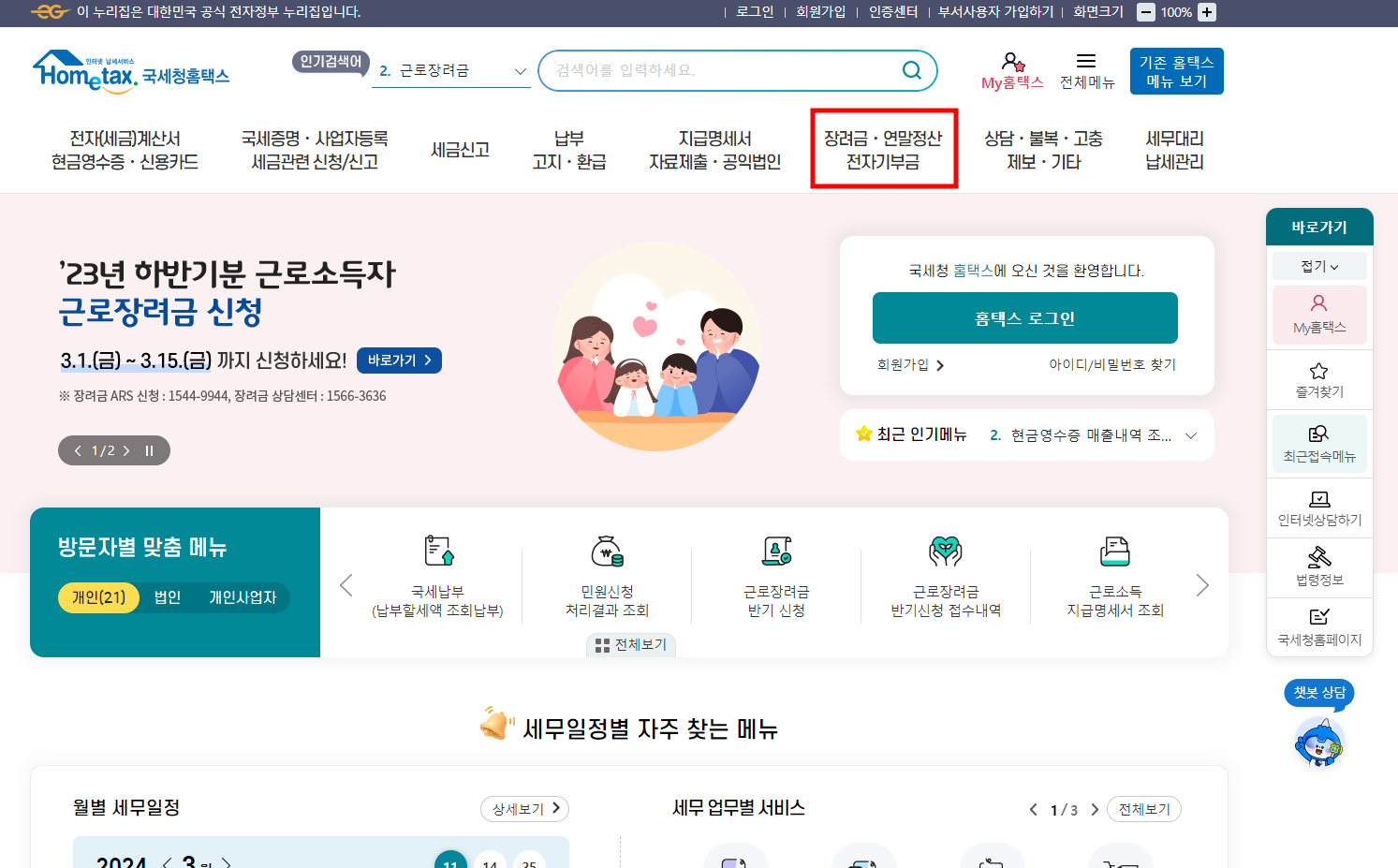 2024 근로장려금 지급액계산기